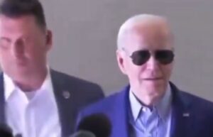 President Joe Biden walks in the room. He’s wearing those cool presidential looking sunglasses like he’s on vacation or he’s a spy, but he’s the President of the United States. What does he hear when he walks in? A big “thanks for nothing, f*ck you!” from a heckler who doesn’t like him at all. Just for context, I have no idea when this video took place – or where – or when. I know absolutely nothing about this video except that it’s FUNNY!!
