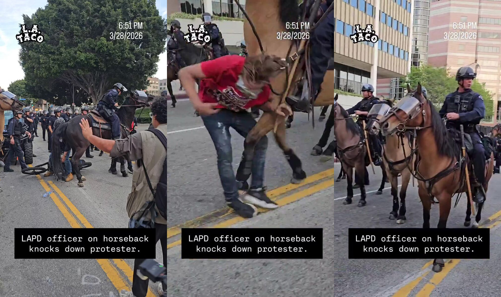 No Kings protestor KICKED to the ground by a HORSE
