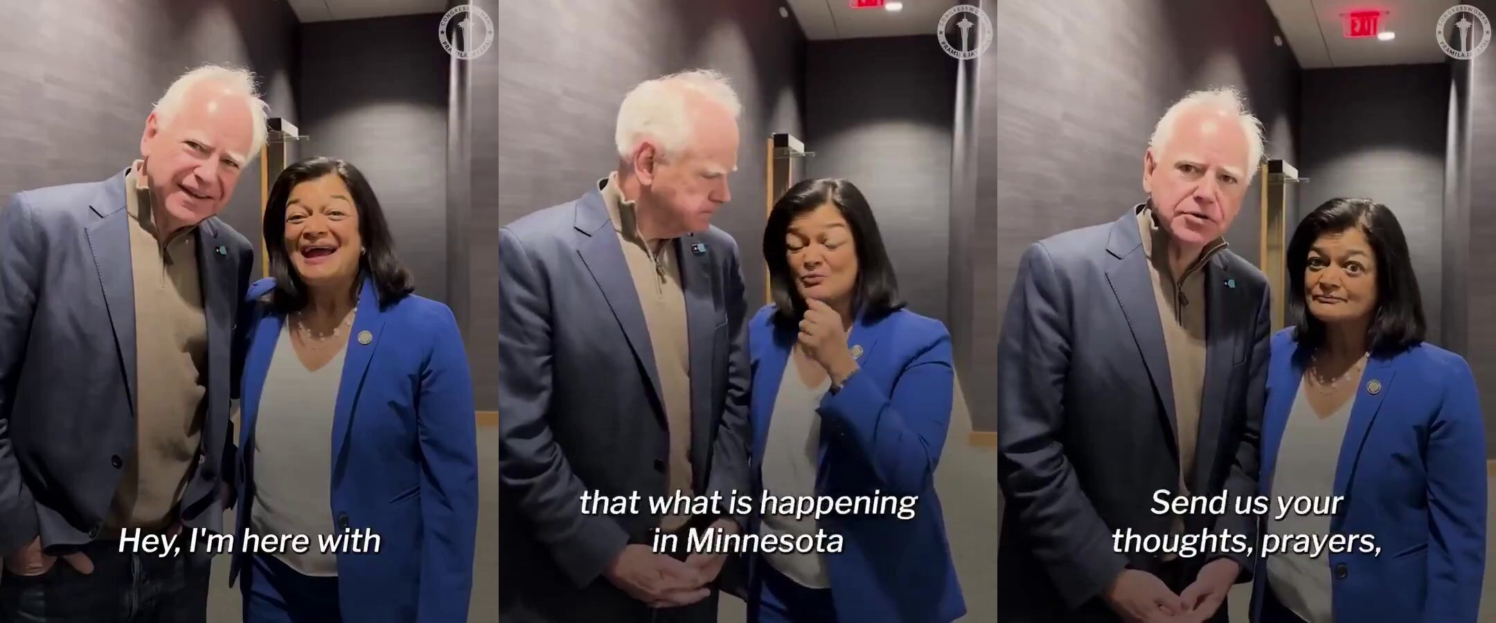Twenty-eight Democratic members of Congress traveled to Minnesota to defend Tim Walz and the Somali fraud networks allegedly exploiting American taxpayers, while ICE works to address the situation. Check out this propaganda video featuring Pramila Jayapal praising Walz as if he were a hero.