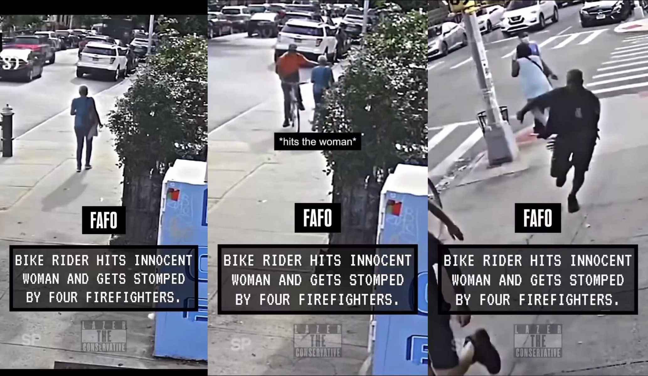 Rotten hoodrat suckers innocent woman, then gets STOMPED by FOUR FIREMEN