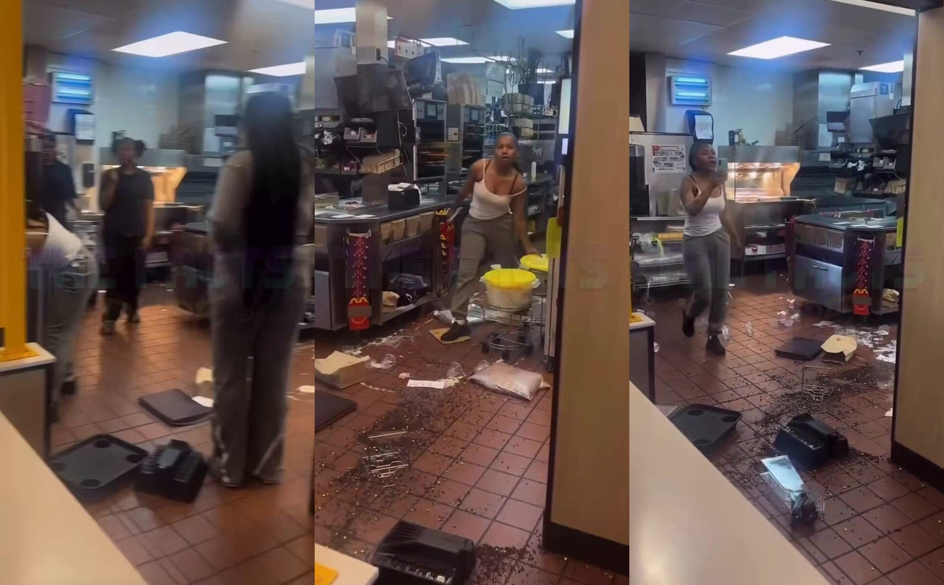 A chaotic scene unfolded at a Philadelphia McDonald’s when a woman went on a wild rampage, completely trashing the place. She hurled McFlurry toppings, tossed towel buckets, and scattered food across the entire grill area.