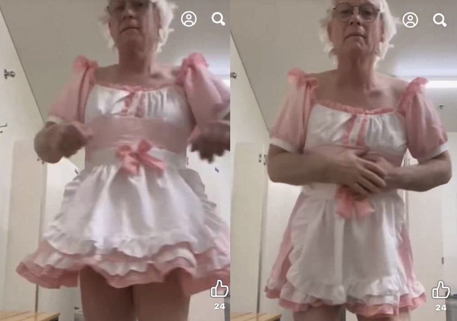 Yeah, this ain't gonna fly with me buddy. Go in the men's room where you belong, even if you're dressed like a lady.