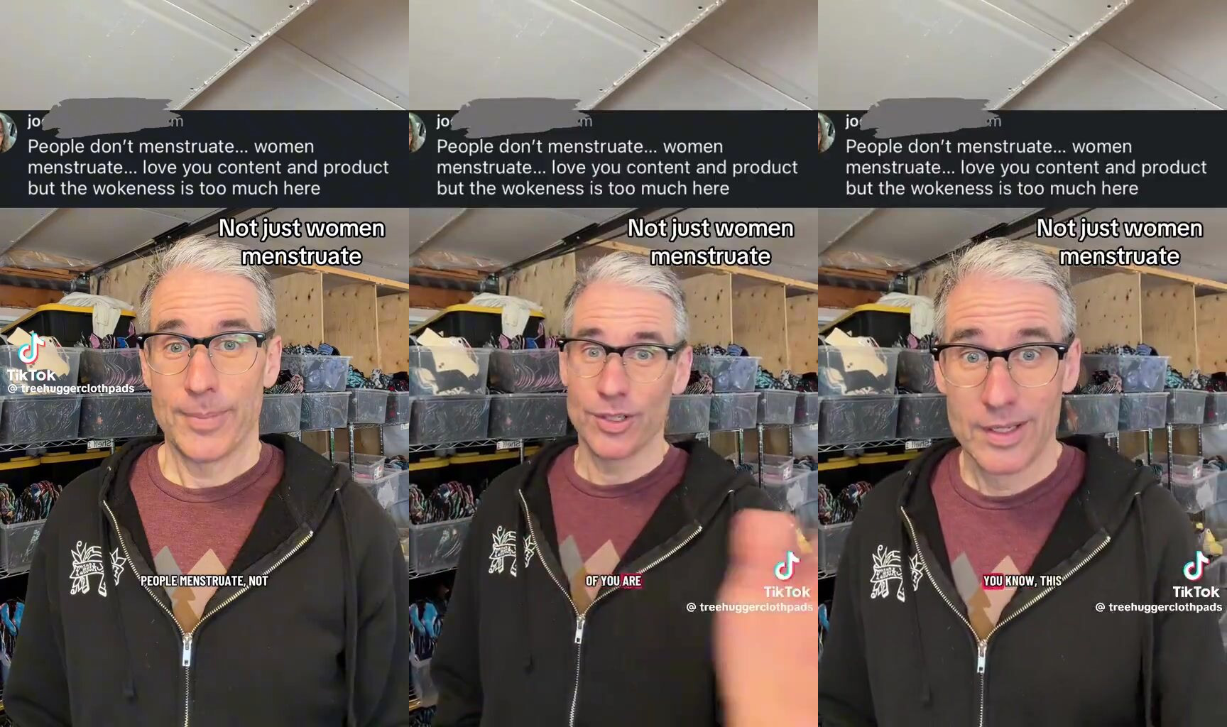 Creepy man who sells handmade reusable pads wants us to say “people who menstruate” Nah bro, it's called women and the fact these are reusable is disgusting. You creep.