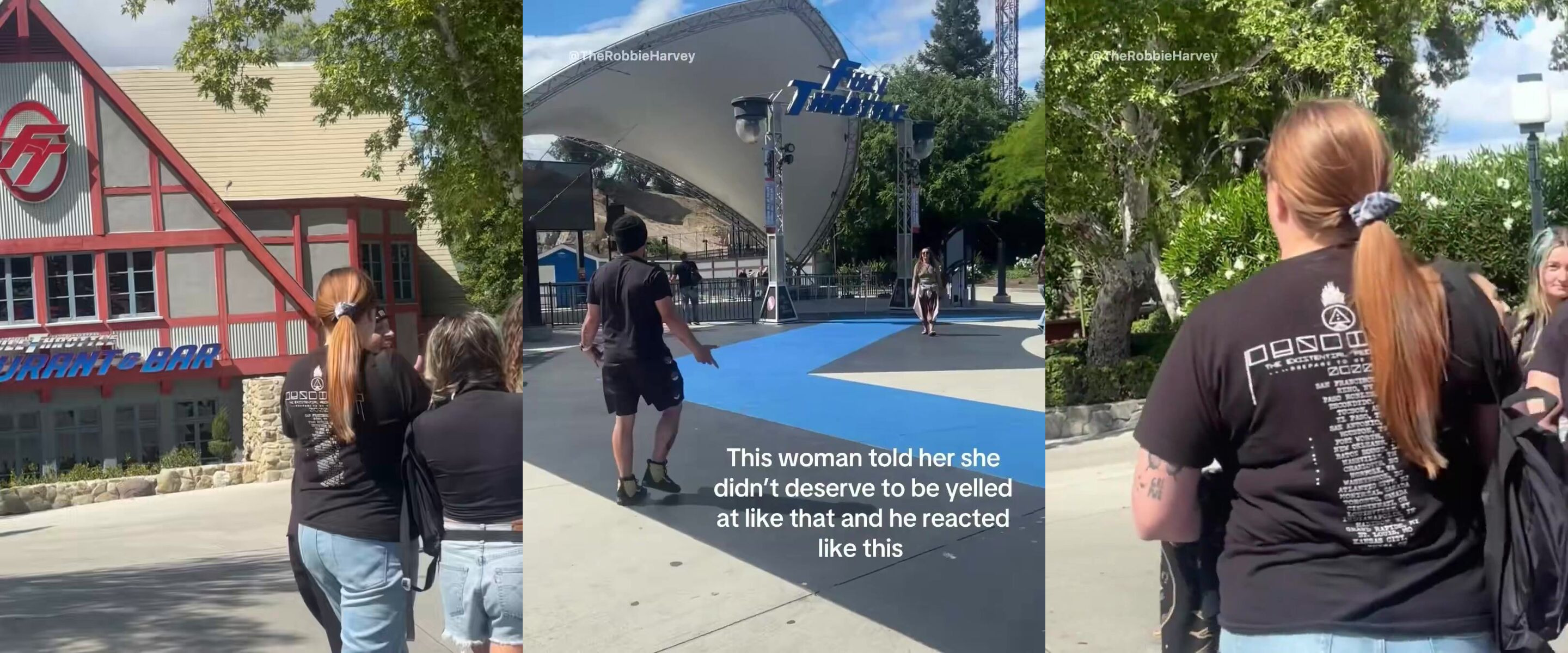 Food influencer Spice King, also known as Cameron Walker with over 20 million TikTok followers, was reportedly seen confronting multiple women at Six Flags. Walker claims a woman sparked the incident by calling him a racial slur, but witnesses dispute this, alleging he was yelling at his girlfriend, shouting “DO YOU UNDERSTAND ME?!” This reportedly prompted bystanders to intervene, with one telling the young woman she didn’t deserve such treatment and urging her to leave. Later, another woman tried to calm things down, but Walker allegedly turned his anger toward her, issuing threats.