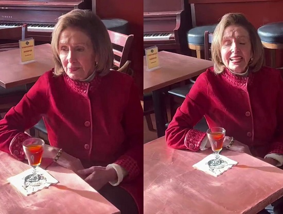 Former House Speaker and well-known Democrat, Nancy Pelosi, was spotted sitting alone (from what the video shows) and looking sad. It's not clear if she was with other people, but this part of the video shows her sitting at the table with a drink and no one else but the handler person is there. One guy was asking questions and it seemed like Nancy didn't really want to talk about anything he was asking, so her handlers said thank you and removed him. Poor guy just had some questions, but he's not getting answers today. I won't say what he asked, because if I do, then I might get fact checked. You'll have to hear them straight from the guy himself by watching the video.