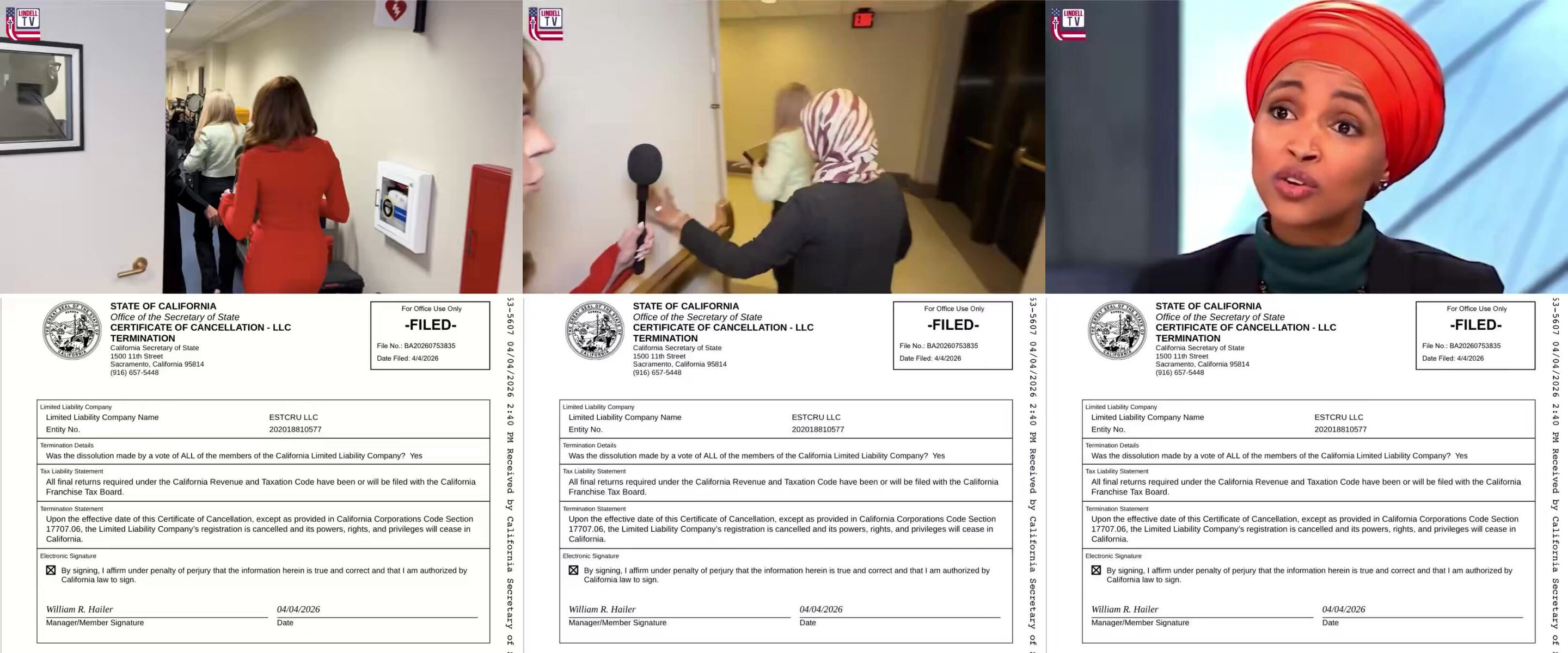 Ilhan Omar’s alleged “winery” was officially dissolved just nine days after her “amended” financial disclosure was filed. She’s been reacting strongly to reporters questioning her about the supposed winery and the dramatic changes in her net worth.