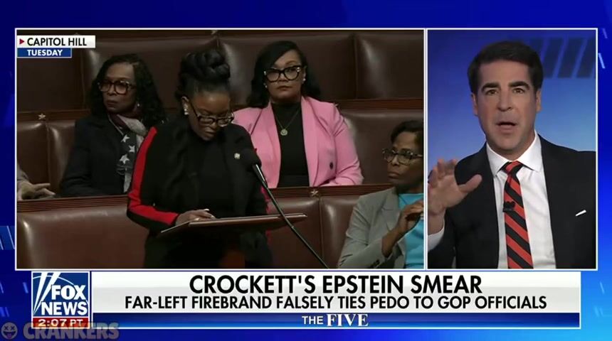 Jesse Watters: “It is. I’ll take it from here. My staff did the research that Jasmine Crockett’s staff did, and we did it in less than 25 minutes. And Romney, Bush, the NRCC, WinRed, no one took Epstein money. It checks out. Jasmine Crockett is dumb. She knows her staff is dumb. That’s why she gave herself an out. So she lied.”