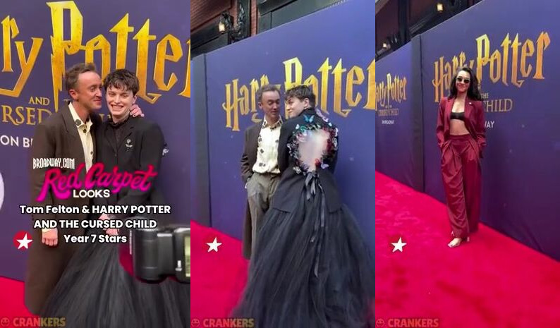 Male Harry Potter star wears a DRESS while being kissed by Draco Malloy actor Tom Felton on the red carpet for ‘Harry Potter and The Cursed Child.’
