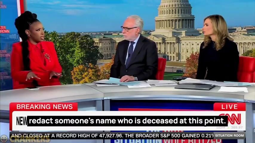 She's so bad that she gets called out live by CNN for Democrats redacting Epstein documents to try to smear President Trump with their fake narrative.