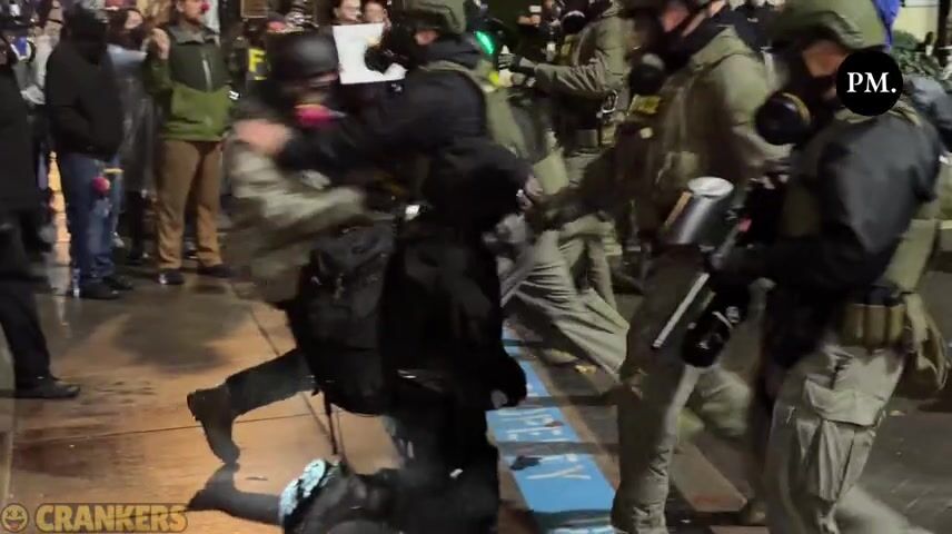 Breaking news from Katie Daviscourt — Antifa agitator arrested by federal police, dragged into custody at the ICE facility in Portland.