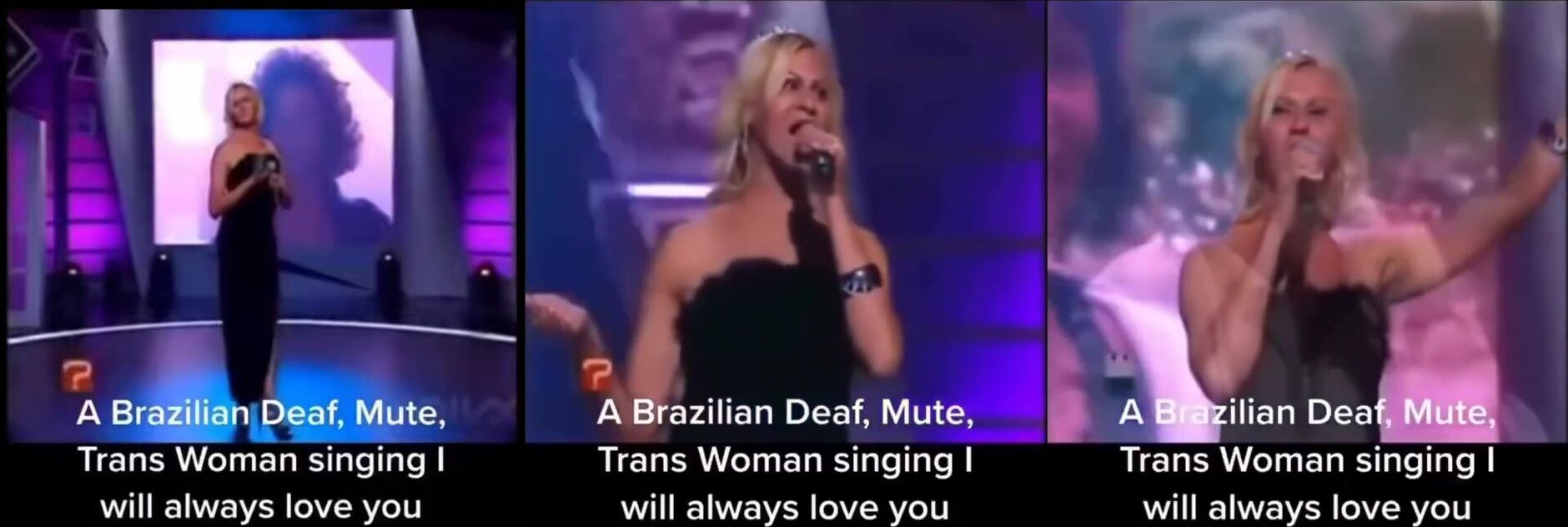 Brazilian deaf mute transgender singing 'I will always love you'