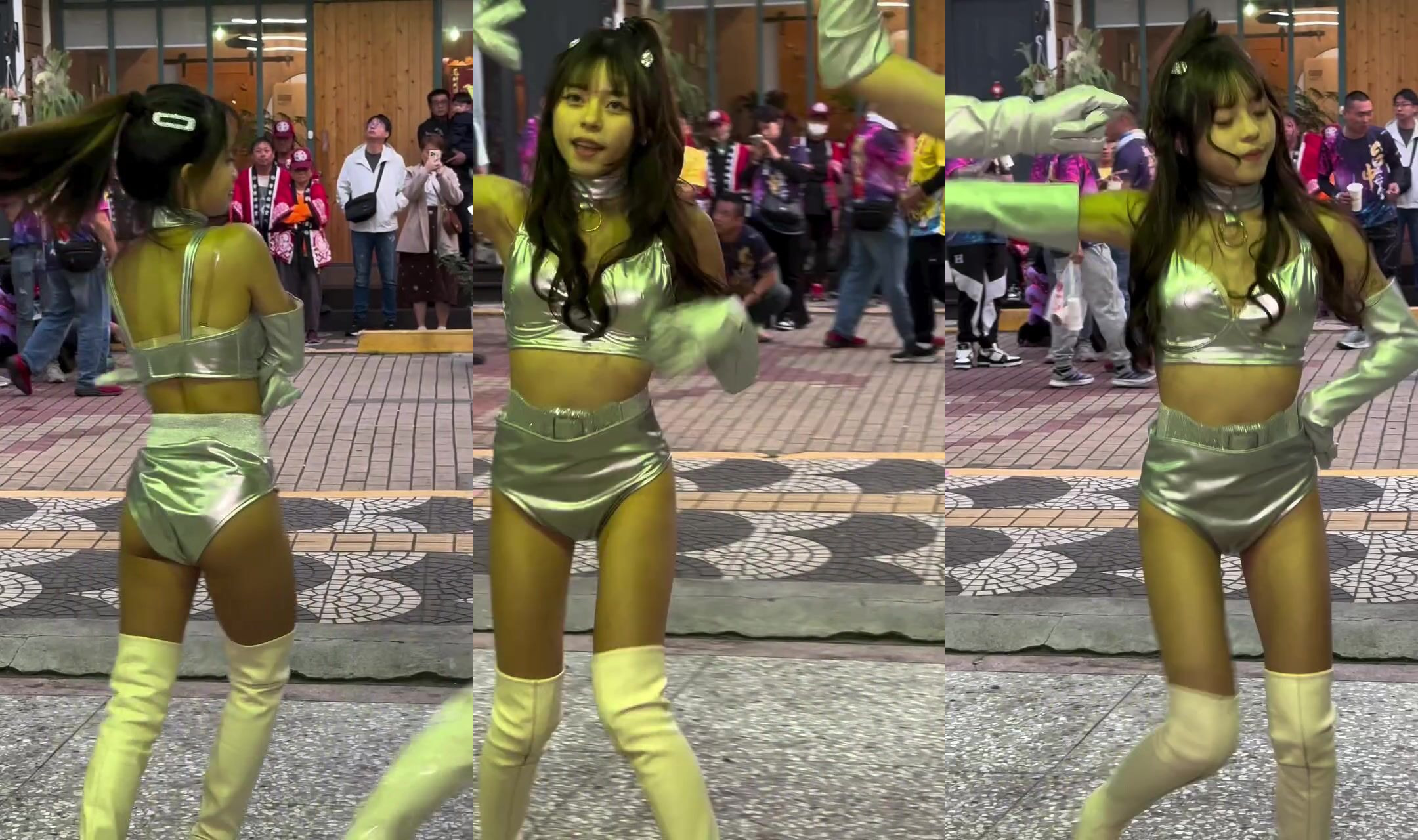 Asian space girl shows off dance moves