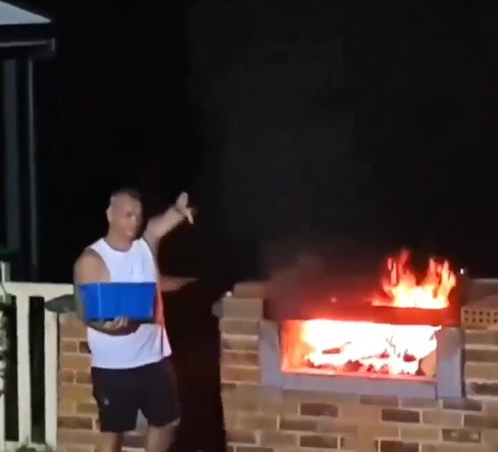A backyard BBQ turned chaotic when a guy dumped a bucket onto a raging fire, causing it to instantly erupt into a massive fireball. Flames shot high into the air, smoke billowed everywhere, and it was a clear reminder of how quickly bad decisions can become dangerous. Terrible idea... never try this.