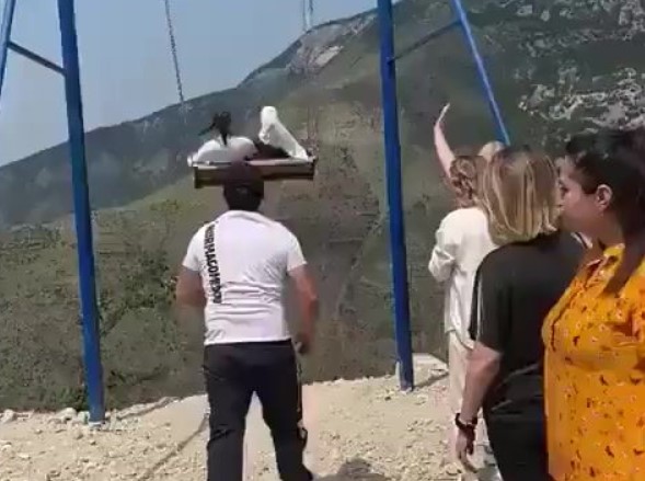 Two women escaped with minor injuries after falling off a swing perched on the edge of a 6,300-foot cliff in Russia. They were taking a ride on the swing over Sulak Canyon, located in the Russian Republic of Dagestan, when one of its chains snapped and sent them hurtling off the cliff edge, reports Daily Mail. Luckily, a small wooden platform located just beyond the cliff edge broke their fall and very possibly saved their lives. The two women escaped with only minor scratches, though they were left shaken by the incident.A source in law enforcement told the Komsomolskaya Pravda newspaper: "The women got scared and sustained scratches, but neither of them suffered serious injuries."