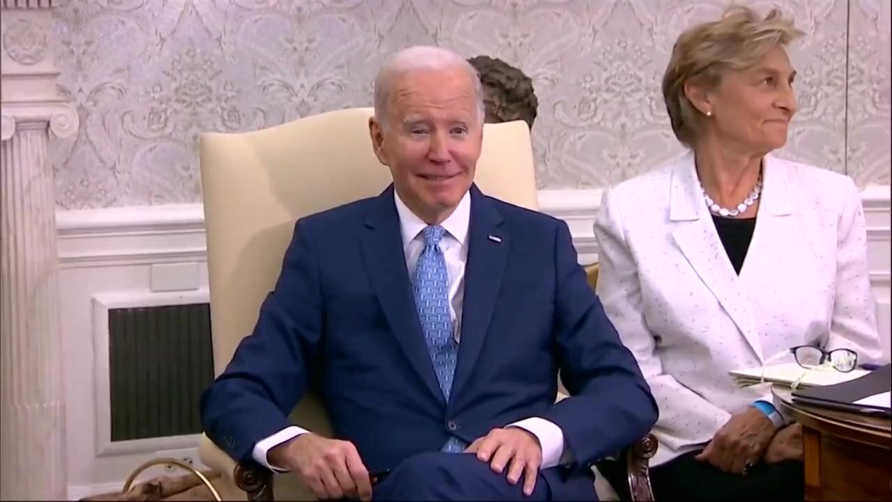 President Joe Biden sat quietly for a little bit and didn't say much. He looked a little bit confused as he listened to people and looked around clueless.