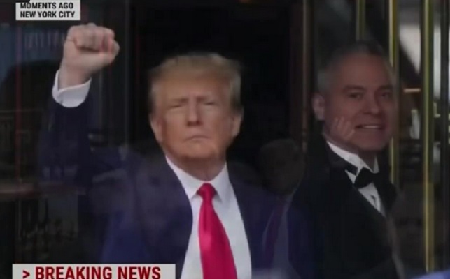 Donald Trump has arrived at the New York City courthouse where was arrested Tuesday and will be arraigned on dozens of charges related to hush money payments — the first time in American history that a former president will face criminal charges.