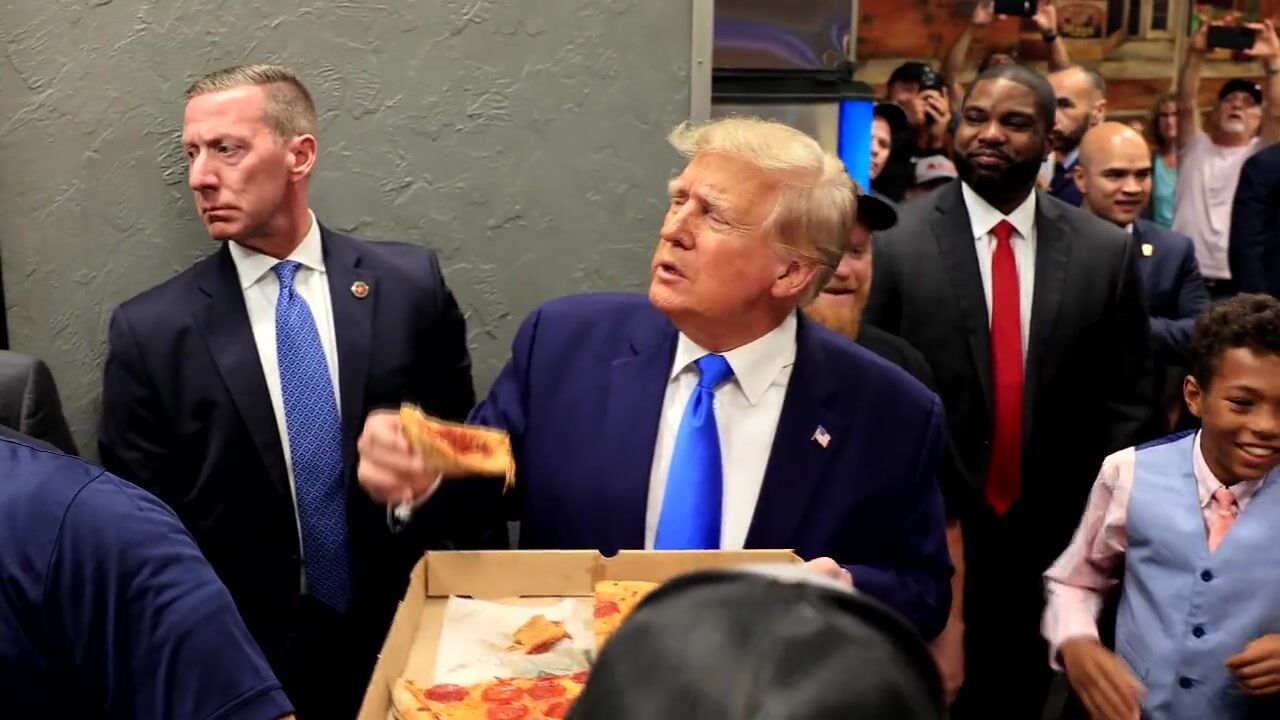 Video shows crowd loving Trump, sharing some fresh hot pizza