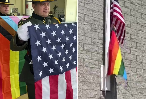 Americans are fed up after watching this video of the American flag being disrespected when a county jail raised a gay pride flag next to it. Graham Allen said on Twitter that "our enemies are LAUGHING AT US" and many people agree with his sentiment. He also said the video was 'absolutely DISGUSTING' as first responders appeared to be forced to participate in a nonsense raising of the gay pride flag.