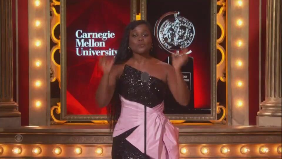 On CBS’ live telecast, Benton saluted the 2023 recipient of the excellence in theater education award, Jason Zembuch Young of South Plantation High School in Plantation, Florida. Benton noted that she is a Florida native and she made reference to DeSantis’ many controversial moves on civil rights in the state by connecting him to the Klu Klux Klan white supremacist organization.