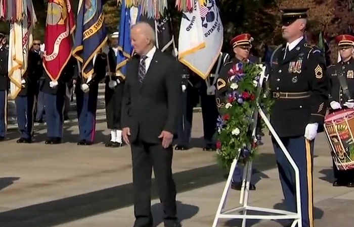 Biden looks confused as he Commemorates Veterans Day at Arlington National Cemetery