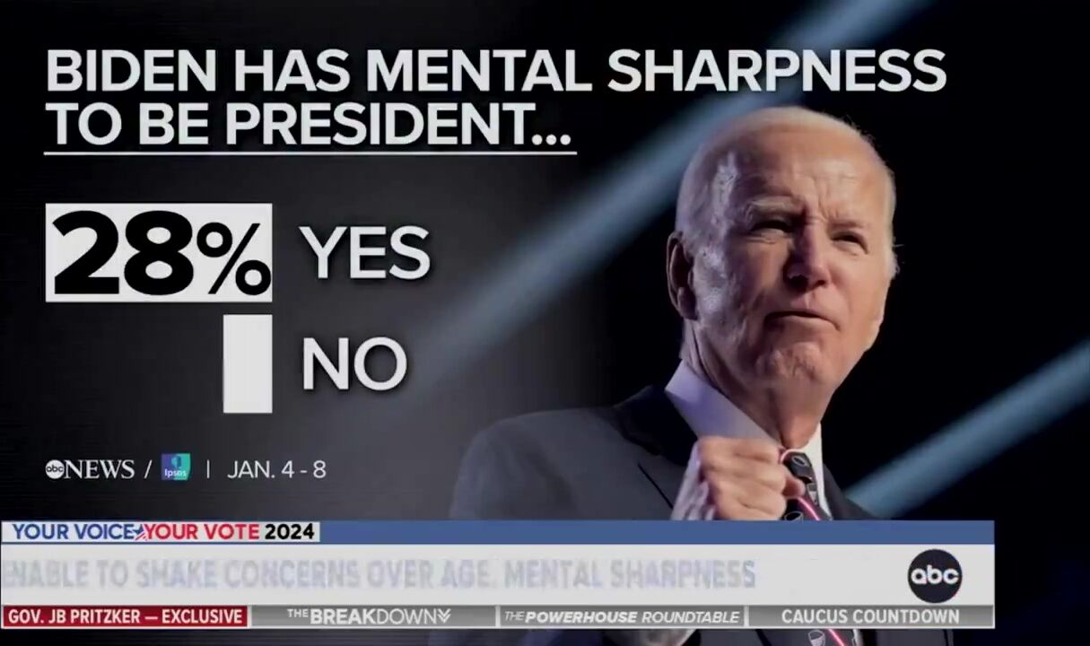 The news video above shows a shockingly low number of people find President Joe Biden mentally capable of handling another presidential term. Then ABC News did a political report that shows a low job approval rating for Biden, sinking him to a new low for the last 15 years. The report started off with the following: