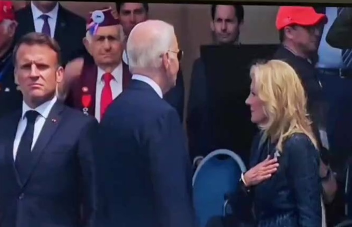 President Joe Biden is seen turning around awkwardly during the D-Day anniversary ceremony. Many people were wondering if he was supposed to turn around, or if he was just confused. The whole thing is very awkward, but it made for a very funny video - and sorta sad too, if he wasn't supposed to turn around at that point.