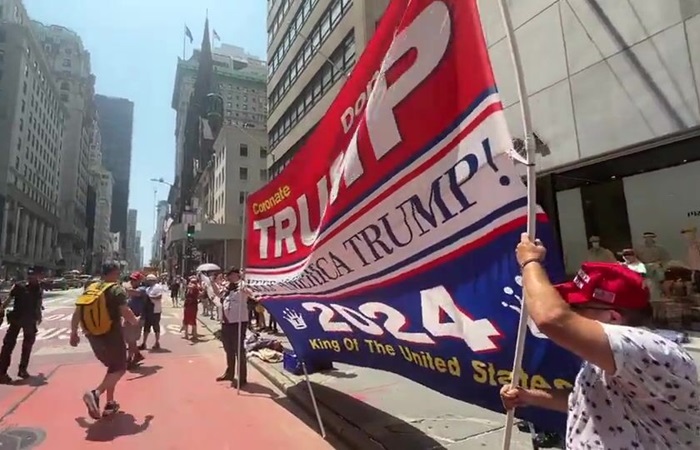 Carloads of Trump supporters and people on the street showed up at the Trump Tower to show their love for Donald Trump. People want Trump to know they support him and are glad he's OK!