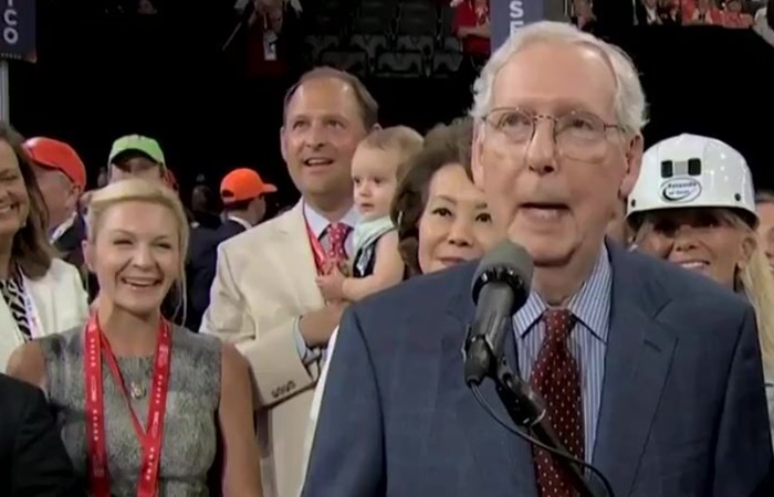 Did you forget Mitch McConnell was still a thing? The people in this audience haven't forgotten. They booed him. Sounds like they want him to retire from politice and move on to something new. This is from when Donald Trump officially became the Republican nominee for president in the 2024 election.