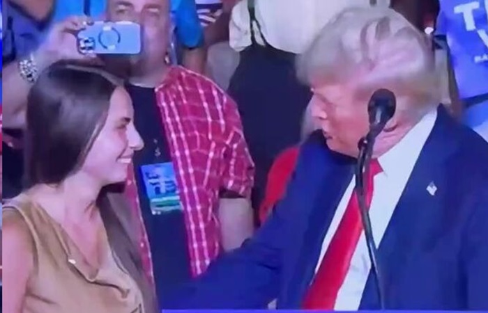 Donald Trump brings a woman on stage and tells the crowd "she saved my life" - it's believed she may have held up a sign and Trump may have looked in her direction at the exact moment a bullet flew by and pierced the top of his ear instead of going through his head. Either way, Donald Trump is very appreciative of her and she seems very humble.