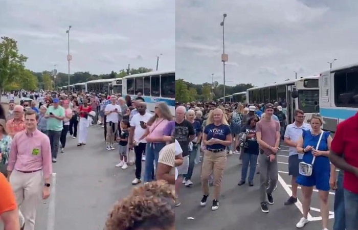 Video shows lots of busses at Kamala Harris event