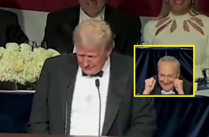 Trump just ROASTED Chuck Schumer: "Chuck Schumer is here looking very glum — But look on the bright side, Chuck, considering how woke your party has become, if Kamala loses, you still have a chance to become the first woman president”