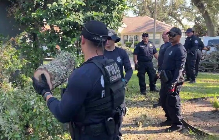 Imagine posting this video in partnership with FEMA and thinking people would see this in a good way? Looks like they're wasting tons of manpower just to move a tiny log. You could've moved that little log with one person!