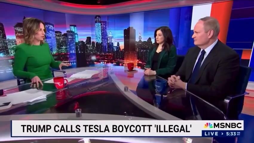 Here's another reason why MSNBC ratings look terrible and the network needs to keep shaking things up and getting rid of the bad hosts. This host talked about how President Donald Trump is labeling violence against Tesla dealerships as 'domestic terrorism' - then says "to be clear, you are now labeled a domestic terrorist for protesting."