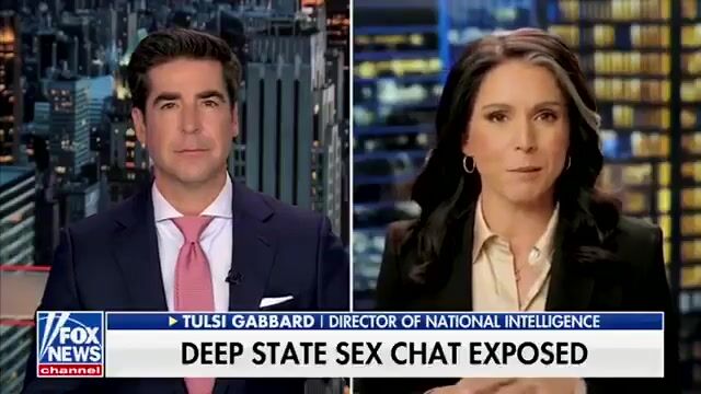 This sure puts the DEEP in the STATE. Donald Trump's Director of National Intelligence, Tulsi Gabbard, said that all 100 of the intel officials involved in the transgender s*x chats will be terminated. Gabbard was talking with Jesse Watters when she said:
