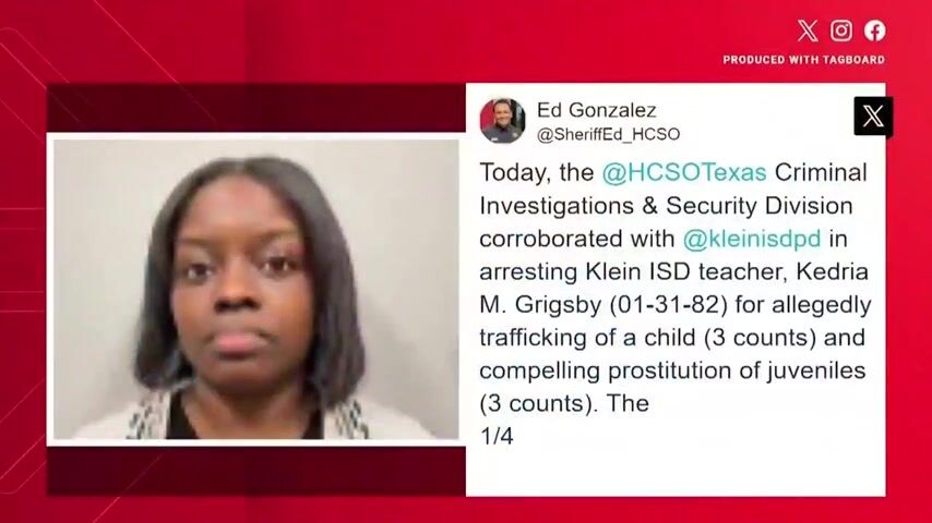 Teacher Kedria Grigsby was charged with recruiting three female high school students for her prostitution enterprise. Her son was also charged.