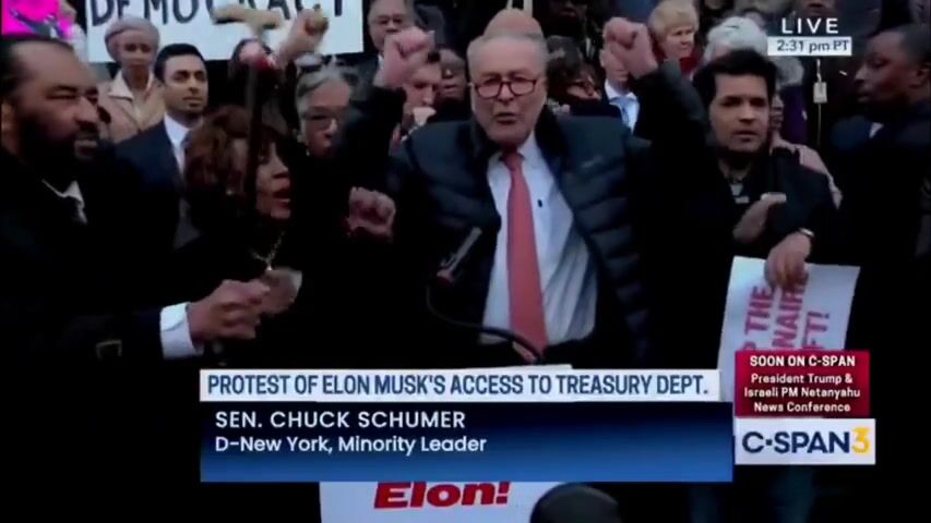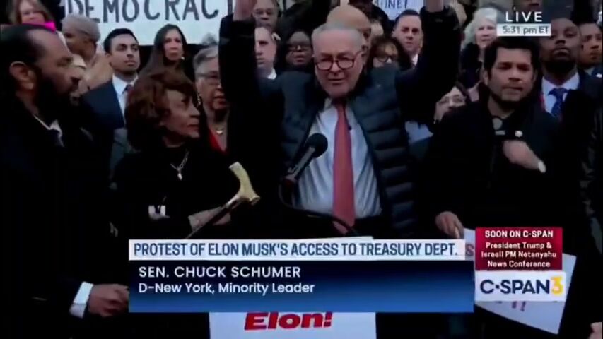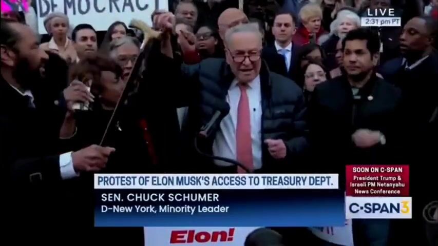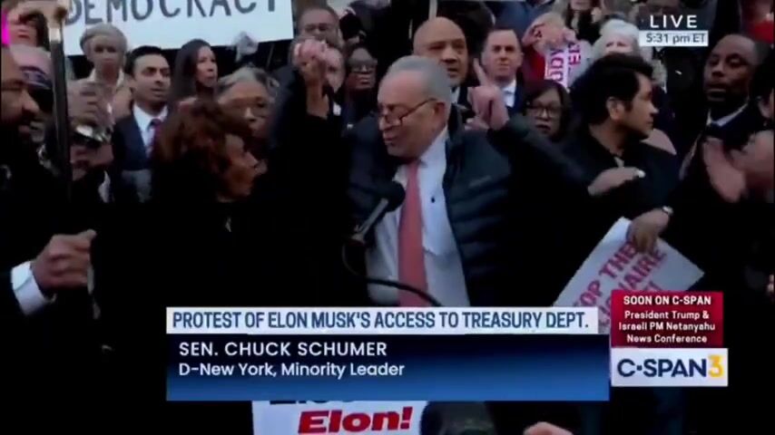 Chuck Schumer begins screaming "We will win! We will win! We won't rest! We won't rest!" during protest against USAID getting accused of wasting American money on nonsense - which is true, they completely wasted money.