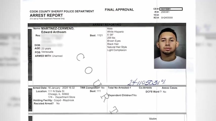 “Cook County court records show Chicago police arrested Edward Martinez Sermino for a felony retail theft in January 2024, and he failed to appear for court triggering a warrant for his arrest.”