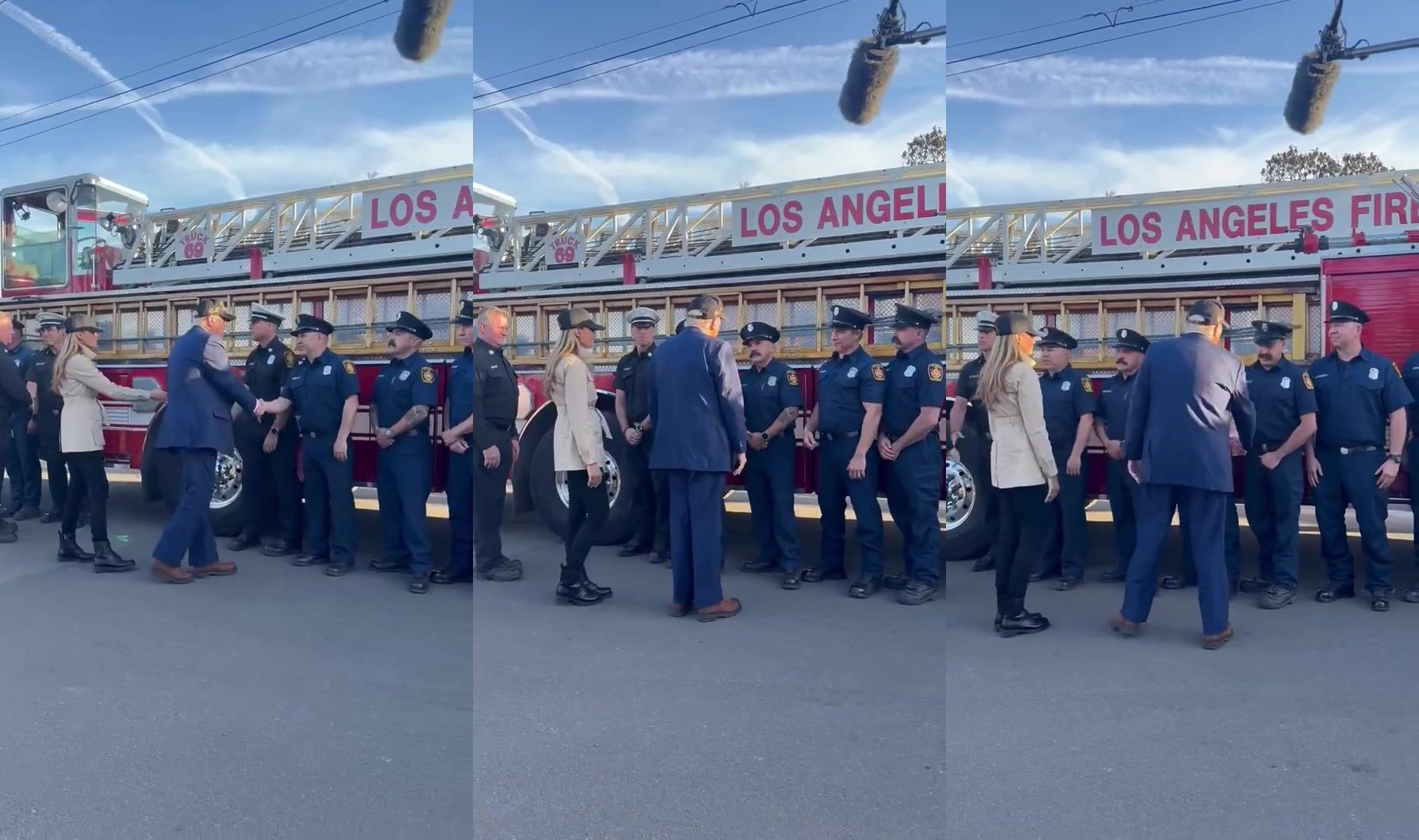 President Donald Trump shakes hands with brave firefighters from the Los Angeles Fire Department, and one of them says “Thank you for saving America, Mr. President.”