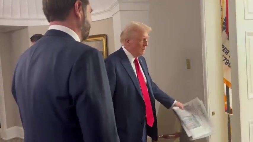 Speaker Mike Johnson said: "As we gathered for our meeting at the White House yesterday, JD Vance mentioned to us that he had never before visited the Oval Office. I told him and President Trump that I HAD to capture the moment on video. Only in America can a hardworking young man from Appalachia rise from his humble circumstances to enter the Oval for first time as VICE PRESIDENT OF THE UNITED STATES. What a country!"