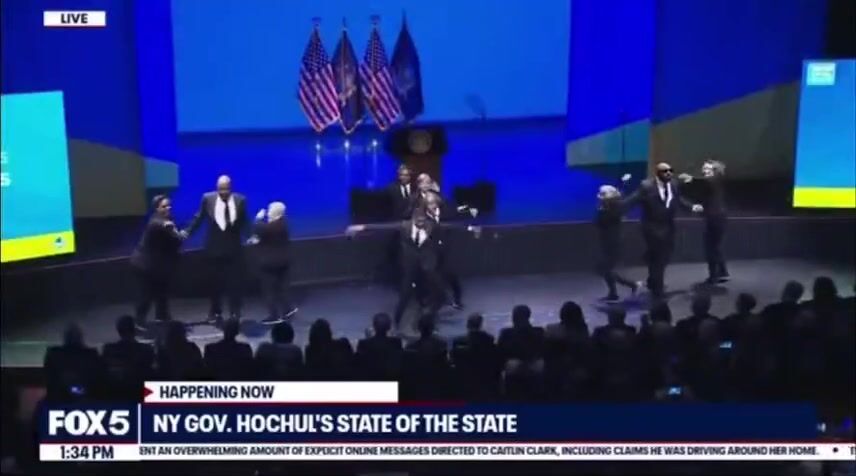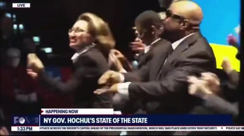 This 'awful' performance was a part of NY Gov. Kathy Hochul's 2025 State of the State Address. This is the same Hochul who said subways are safer and a woman was lit on fire on the subway. How is anyone taking these people seriously?