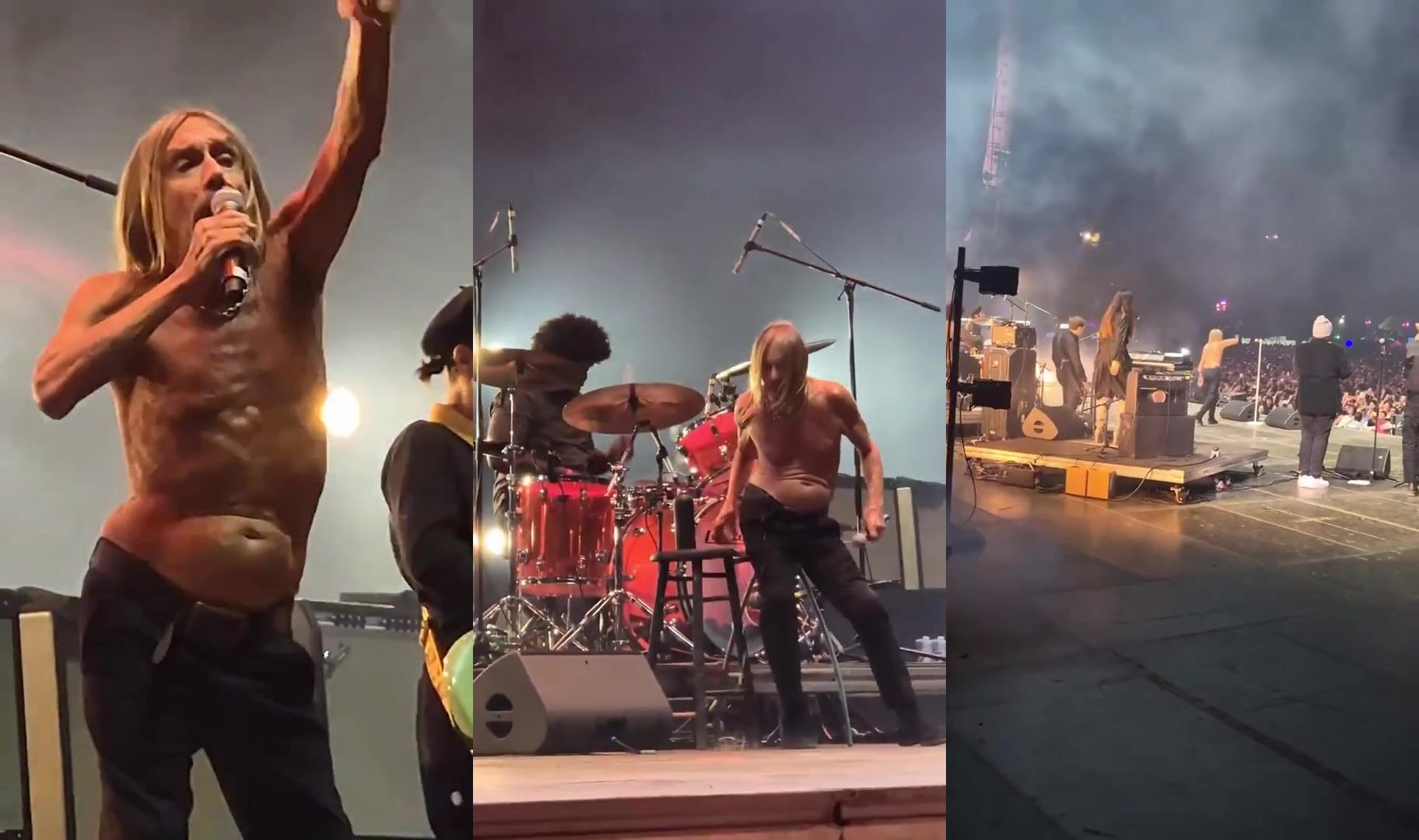 Iggy Pop performs topless on stage