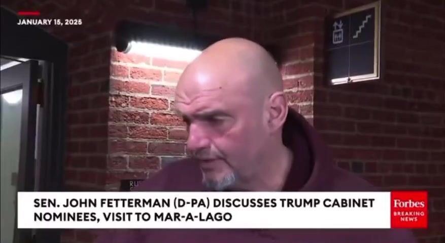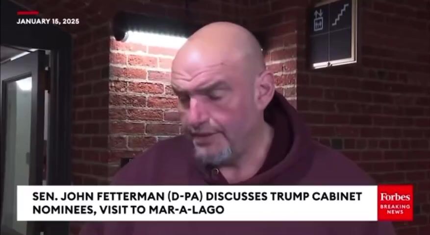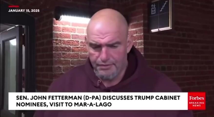 Democratic Senator John Fetterman says his meeting with Trump in Mar-A-Lago went very well. Reporter: “How was your meeting with Trump over the weekend?” Fetterman: “It was a positive experience. I was glad to do it... I appreciate the opportunity, and it was a good conversation.”