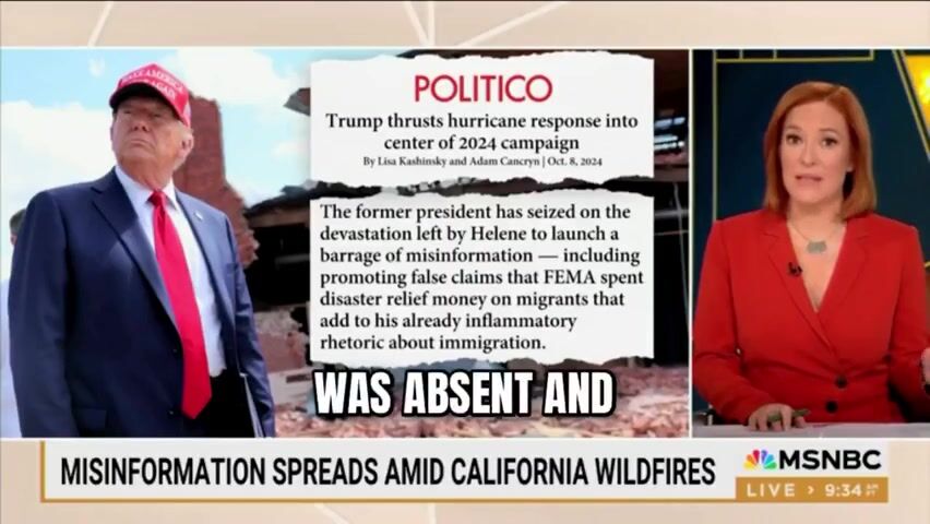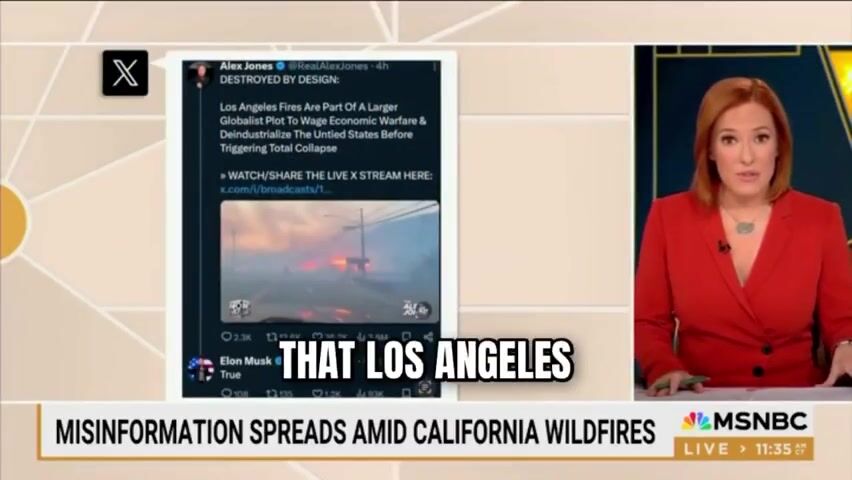 MSNBC's Jen Psaki makes absolutely no sense at all when she starts talking about Donald Trump and Elon Musk during a segment on the California wildfires. Neither Trump nor Elon have anything to do with California leadership, nor is Trump even in office at the moment. In fact, if Gavin Newsom listened to Donald Trump when he suggested that California should do more preventative work on the forests, then maybe the fires wouldn't have been as bad. However, it appears that Gavin Newsom did barely anything at all.