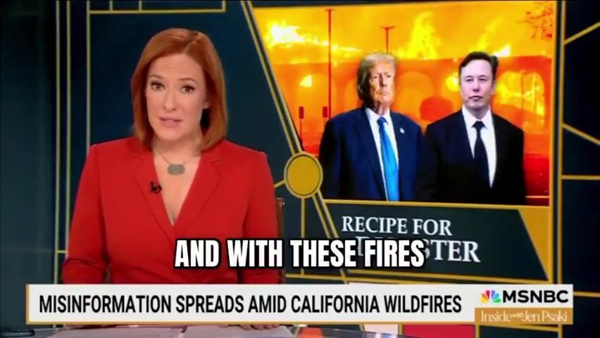 Now back to Jen Psaki - she should be kicked off the air for making the tragedy in California about Trump or Elon when everyone knows they had no impact on anything at all. Every finger should be pointed at DEI and every political leader in California who failed the state. Karen Bass, Gavin Newsom, etc.