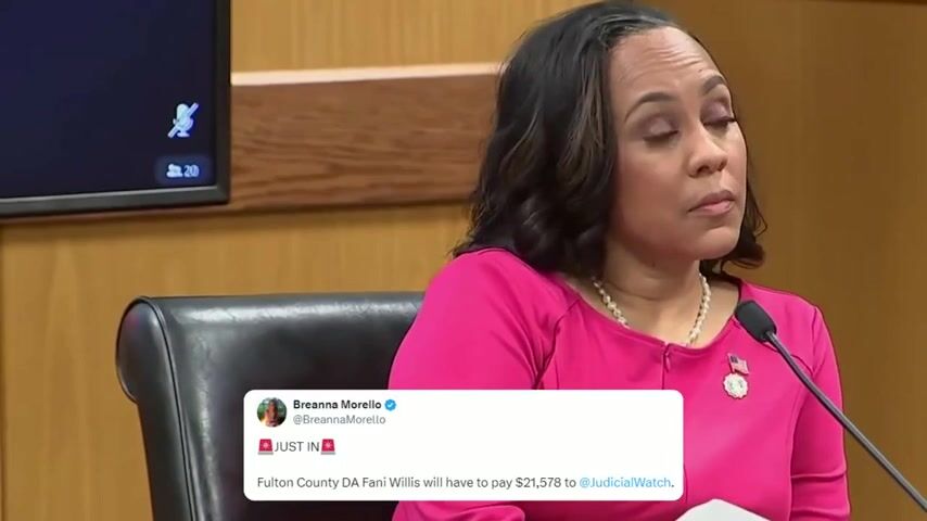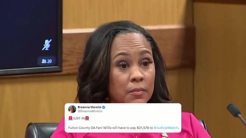 A judge in Georgia ordered Fani Willis to pay over $21,000 to Judicial Watch to cover their legal fees in the lawsuit to expose her collusion with the Joe Biden DOJ to "get Trump." Fani Willis does not seem to be having a great month.