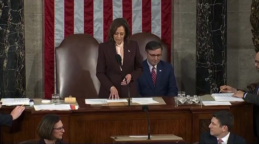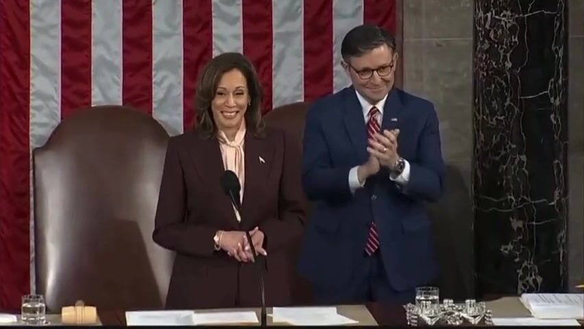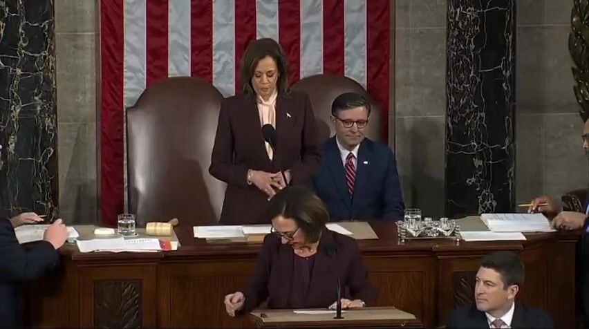 Donald Trump is being certified as the winner of the 2024 election to become the next president. He receives a big applause as Kamala reads off the votes and information.