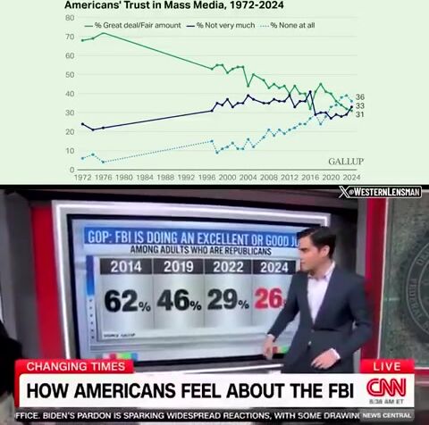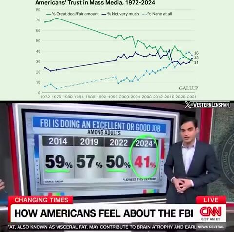 Americans are losing trust in the media and forces like the FBI.