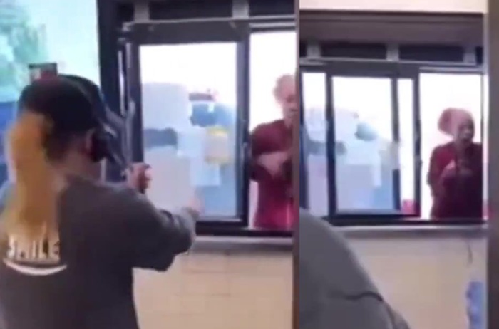 After seeing this psycho going crazy at a drive-thru, it makes me wonder if the employees should be armed. Perhaps a little taser to the face would stop this lunatic from barging in.