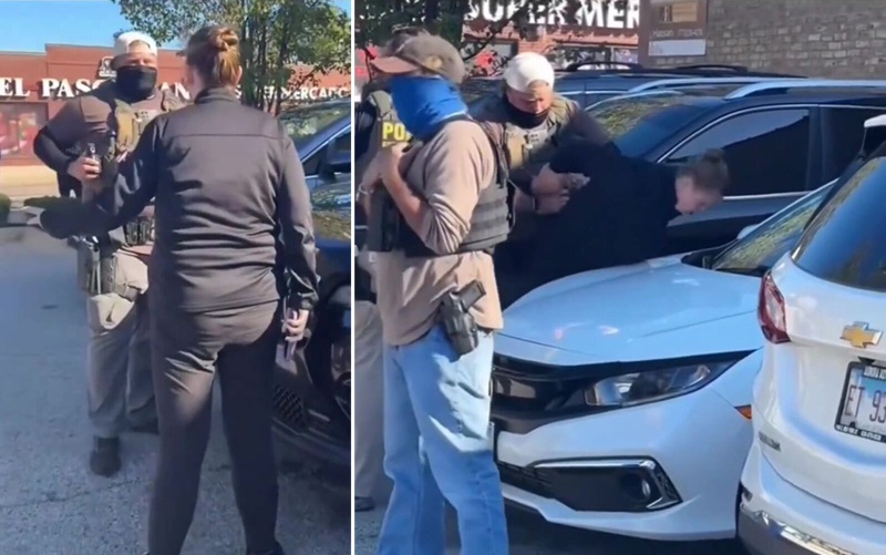 Federal agents are conducting a raid in Aurora, Illinois when a Karen steps in to impede the investigation, takes mace to the face, and ends up being detained herself. What do people think will happen? You can't get in the way of the officers doing their job.