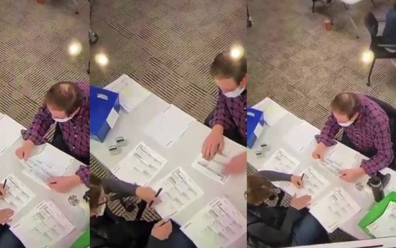 Footage of poll workers allegedly filling out ballots during 2020 election